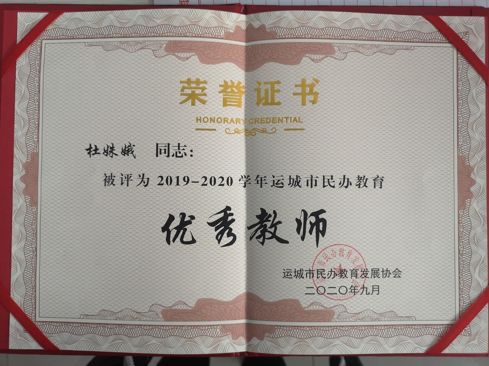 曹譽文,杜姝娥同志被評爲“優秀教師”